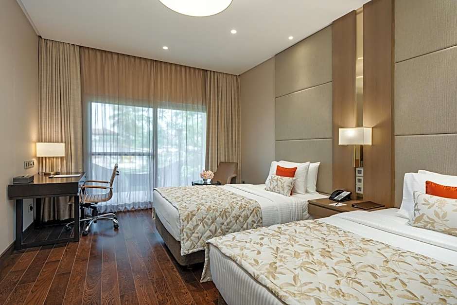 The spacious twin room features air conditioning, a mini-bar, a balcony with pool views as well as a private bathroom boasting a shower. The unit has 2 beds.
